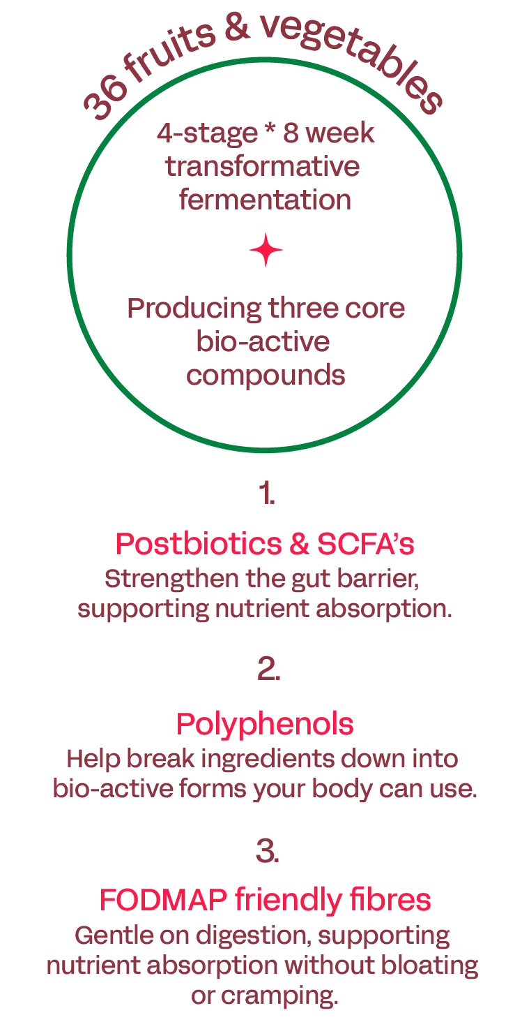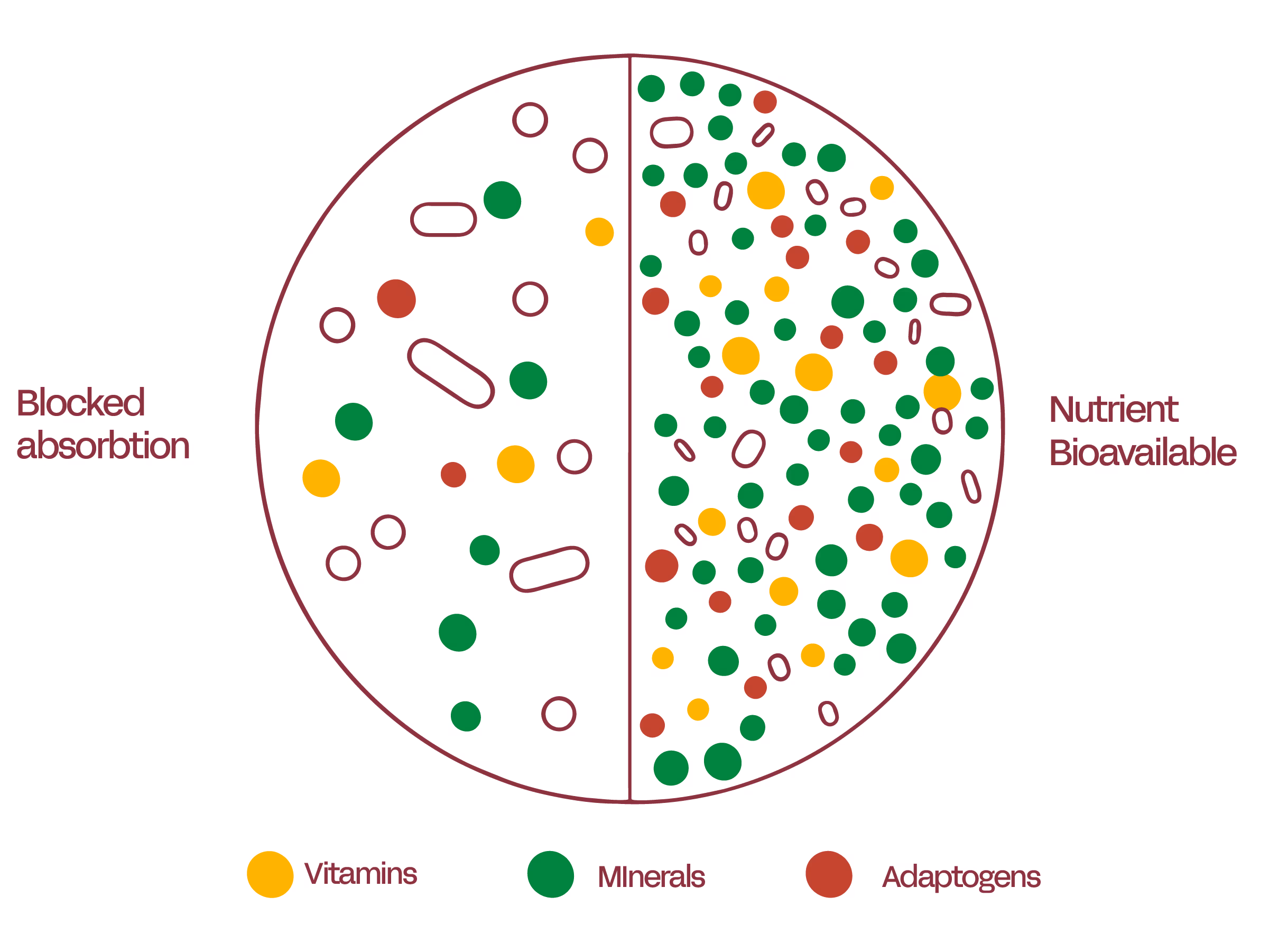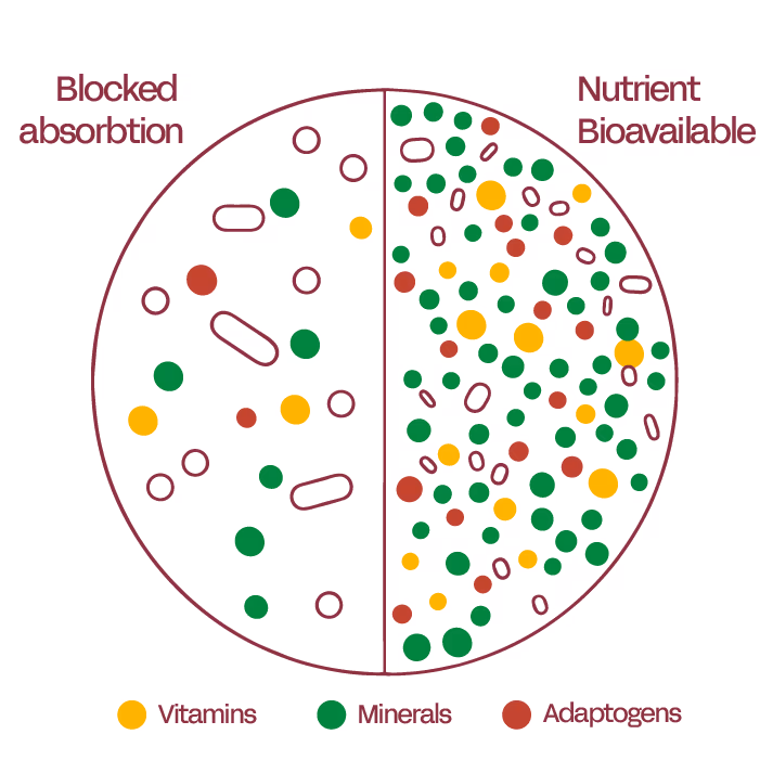 Our research-backed fermentation process breaks down 'anti-nutrients' - the natural barriers in plants that normally block mineral uptake - ensuring that your body gets the full benefit of every ingredient.